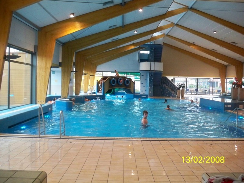 Im Hallenschwimmbad kann man auch Whirlpool und Dampfbad genießen.Erzählen Sie den Kids ruhig, dass es hier eine 80 Meter lange Rutsche gibt.