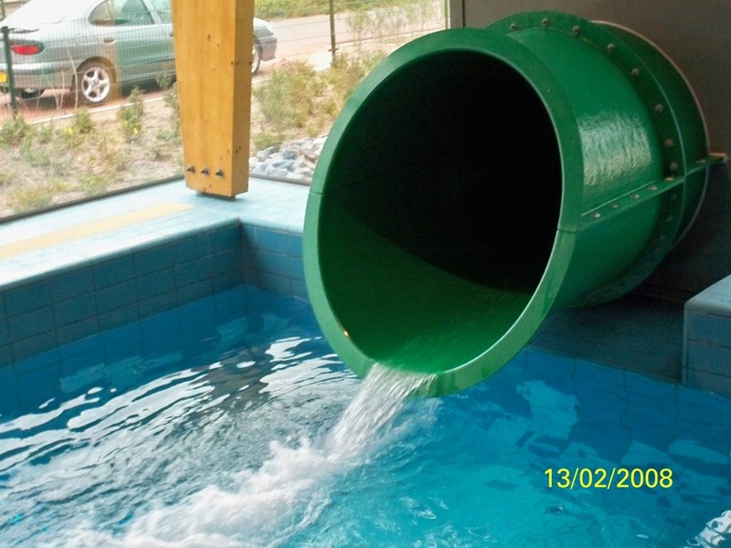 Es gibt auch ein Babybecken mit dem Maskottchen"Juultje", der auf der Babyrutsche steht und von dort alles beobachtet.